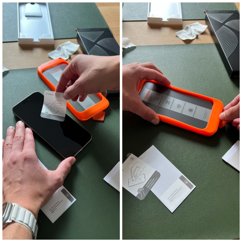 Wie einfach oder schwer lässt sich das Torras-Panzerglas am iPhone 16 Pro Max im Test anbringen?