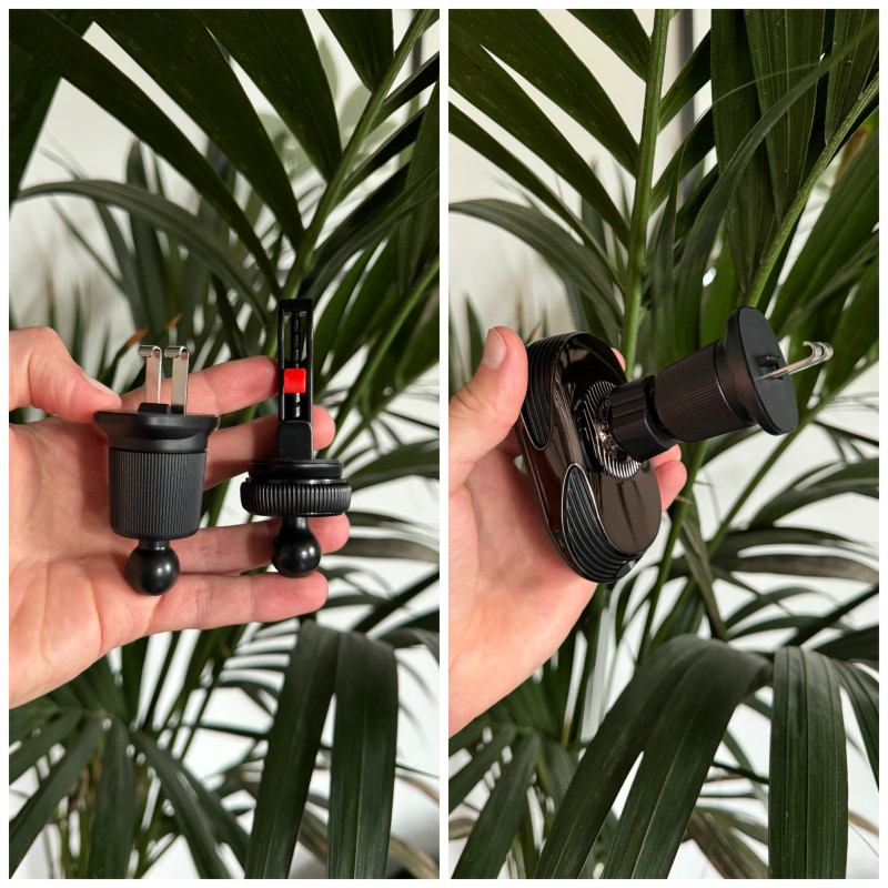 Ein weiteres Update gab es bei der Befestigungstechnik der Autohalterung an den Lüftungsschlitzen. Im Direktvergleich ist deutlich zu sehen, dass der Halter für die Lüftung kompakter geworden ist. In unserem Test konnten wir feststellen, das der neueste MagEZ Car Mount Pro 2 viel schneller zu befestigen ist, als noch der Vorgänger. Durch den geringeren Platzbedarf im Lüftungsgitter ist zudem die Kompatibilität zu noch mehr Fahrzeugherstellern gegeben. Gleichzeitig hält der Car Mount von pitaka nach wie vor fest, ohne zu wackeln.