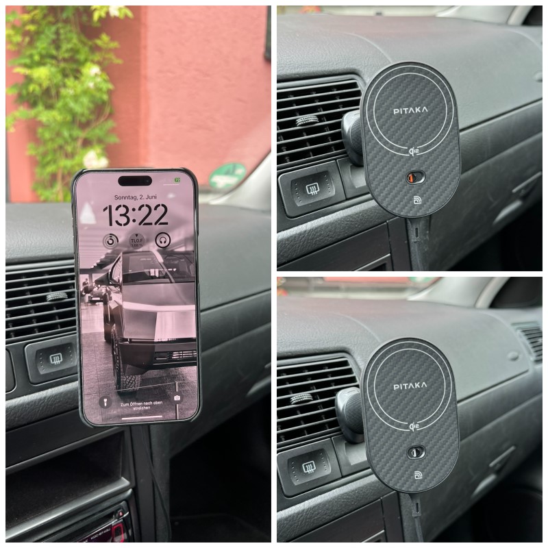 Die MagEZ Car Mount Pro 2 Autohalterung von pitaka mit Qi2-Wireless-Charging-Standard – jetzt auch für Tesla!