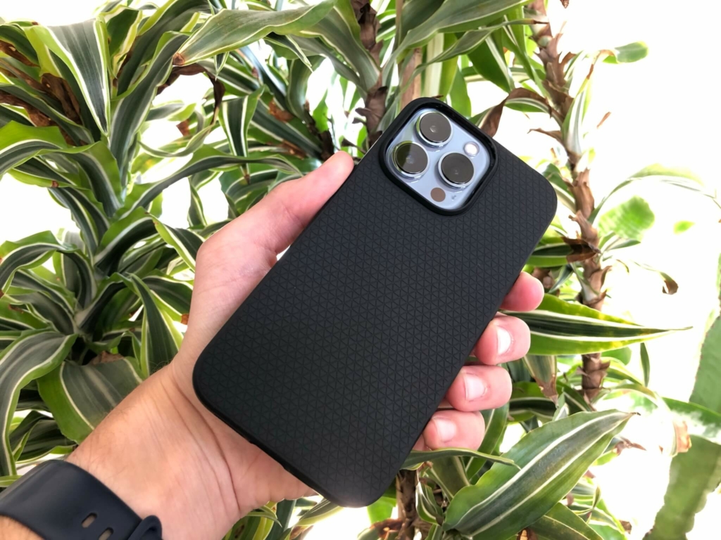 Wenn man auf der Suche nach einer schwarzen, günstigen Hülle ist, welche die ursprünglichen Maße des iPhone 13 nicht zu sehr verändern soll, trozdem aber noch griffig in der Hand liegt, stößt man nach kurzer Zeit auf die Liquid Air Hülle von spigen.