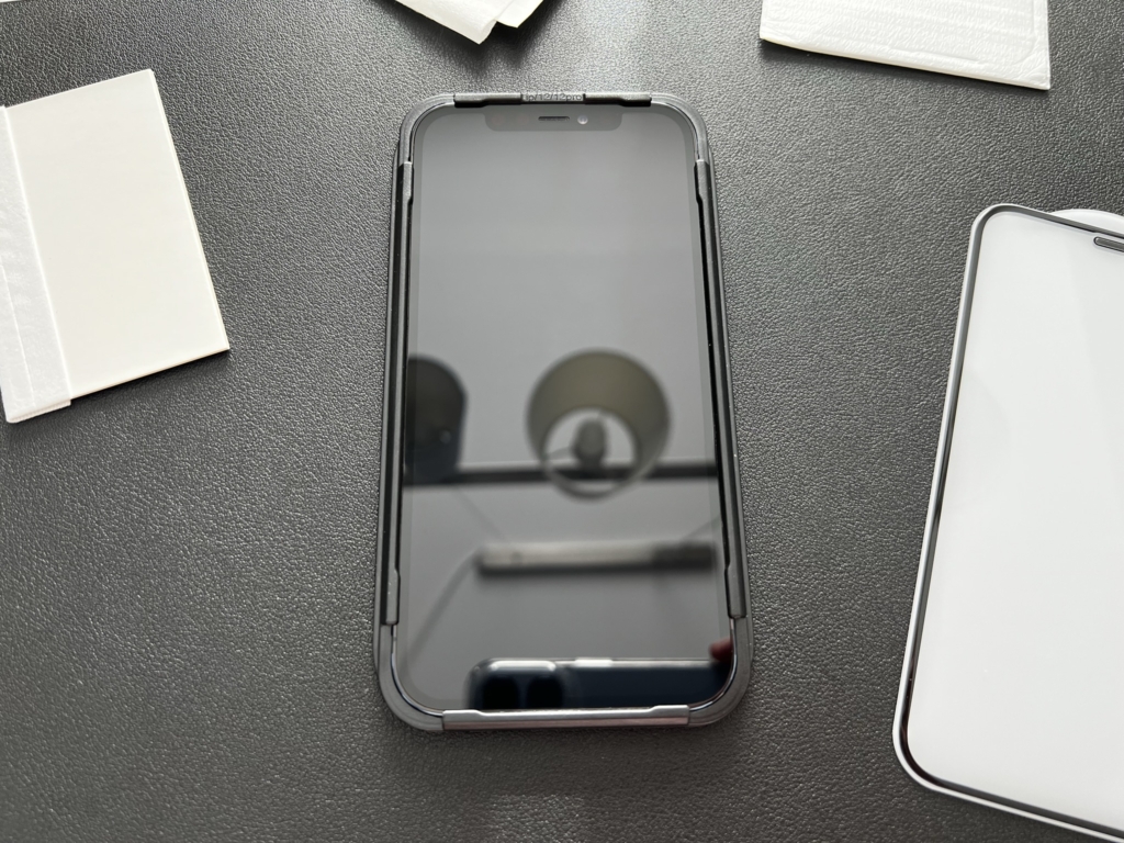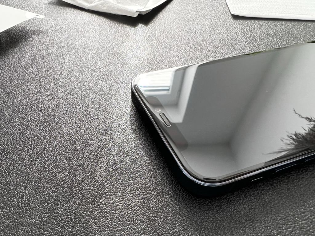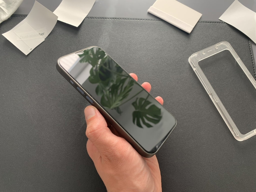 Daher würde sich eine mittige Positionierung des Glases ohne Vorbereitung auf der Anbringhilfe auf dem Display bedeutend schwieriger gestalten. Bei dem Glas für die iPhone 12-Reihe gibt es noch keine Anbringhilfe.