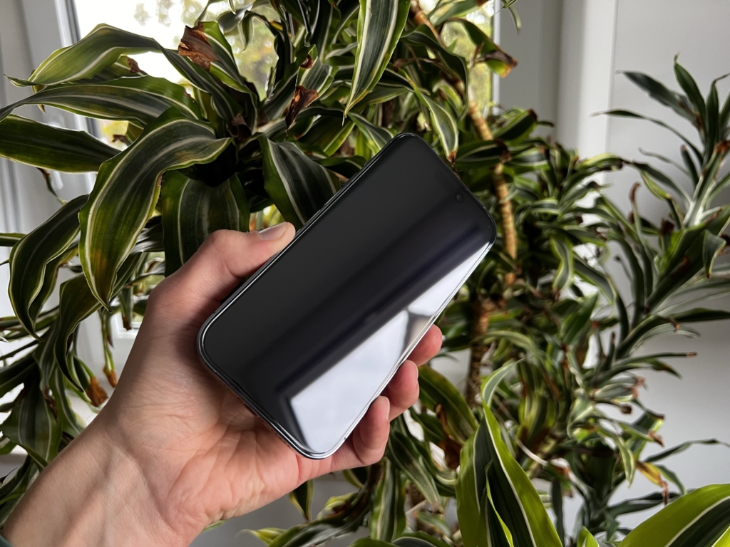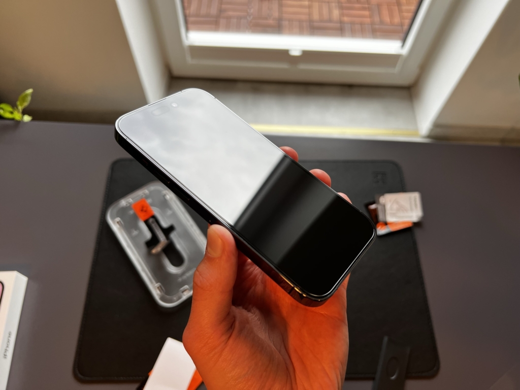 Das Glas.tR EZ Fit am iPhone 14 Pro nach der Montage – fast unsichtbar!